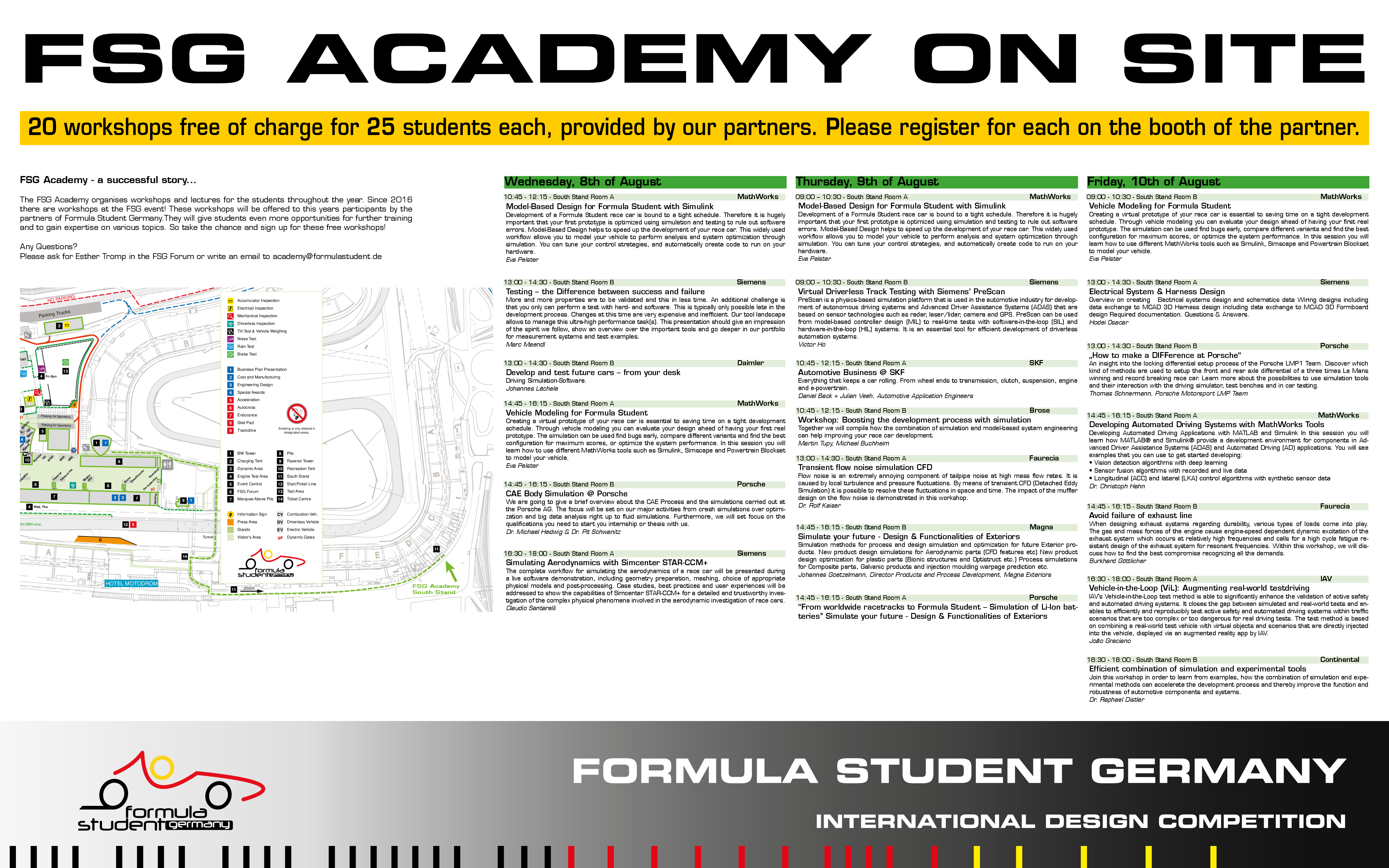 These workshops will be offered to this years' participants by the sponsors of Formula Student Germany. They will give students even more opportunities for further training and to gain expertise on various topics.