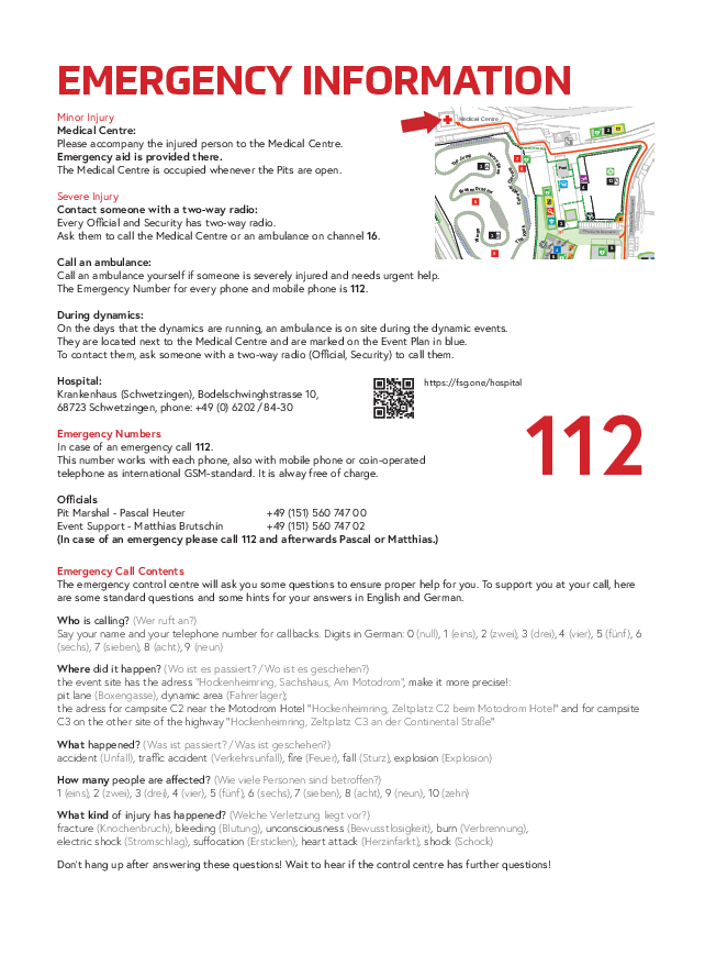 FSG Emergency Information (for Hockenheim)