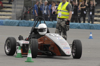During the Skid Pad Event, the race cars are driving a course shaped like an eight, to show the lateral acceleration (forces) of their car. The best result was achieved by R.I.T (Rochester Institute of Technology) and referred Oxford Brookes and Stuttgart to the places 2 and 3.