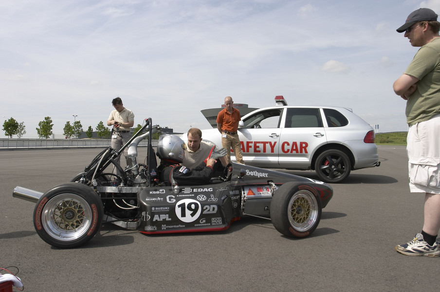 Last Monday Formula Student Germany visited Porsche Leipzig to have a final check and hit the racetrack. During these test the endurance track was set up. This track will be very exciting for the drivers. It will include all elements of the Rules, which means narrow hairpins and some straights.