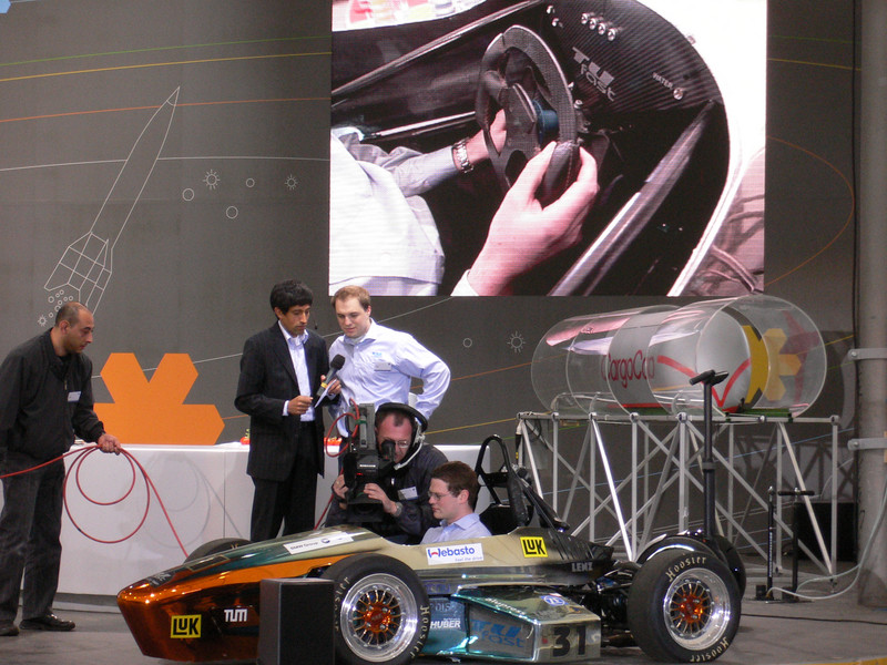 At the opening of the IdeenPark on the 20th of May with Christian Wulf, the minister president of Lower-Saxony, and Ekkehard Schulz, the Thyssen-Krupp Manager, Formula Student Germany was represented by TU Munich and their race car at the plaza stage. In the afternoon two students were interviewed by the WDR’s TV-presenter Ranga Yogeshwar and gave answers and information about Formula Student.