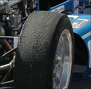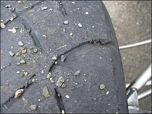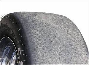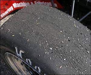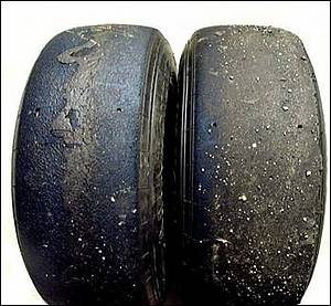 Fig 4. This overheated tyre probably caused by using a compound that was too soft for the conditions.